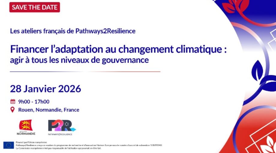 Du : mer. 28/01 à 9:00 Au : mer. 28/01 à 17:00Dans le cadre de la Mission Adaptation de l’UE, le projet européen Pathways2Resilience, en partenariat avec la Région Normandie, propose un atelier dédié au financement de l’adaptation au changement climatique, de 9h00 à 17h00 le 28 janvier 2026 en présentiel à l’Hôtel de Région à Rouen.